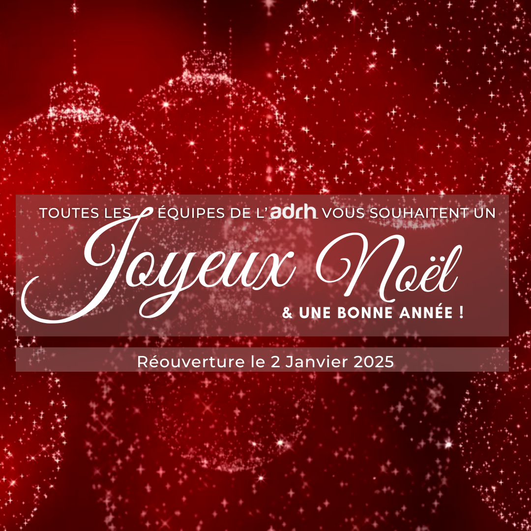 Ho HO hoL'ADRH fermera ses portes lundi 2023 Décembre pour réouvrir le 2 Janvier 2025.A l'année prochaine !